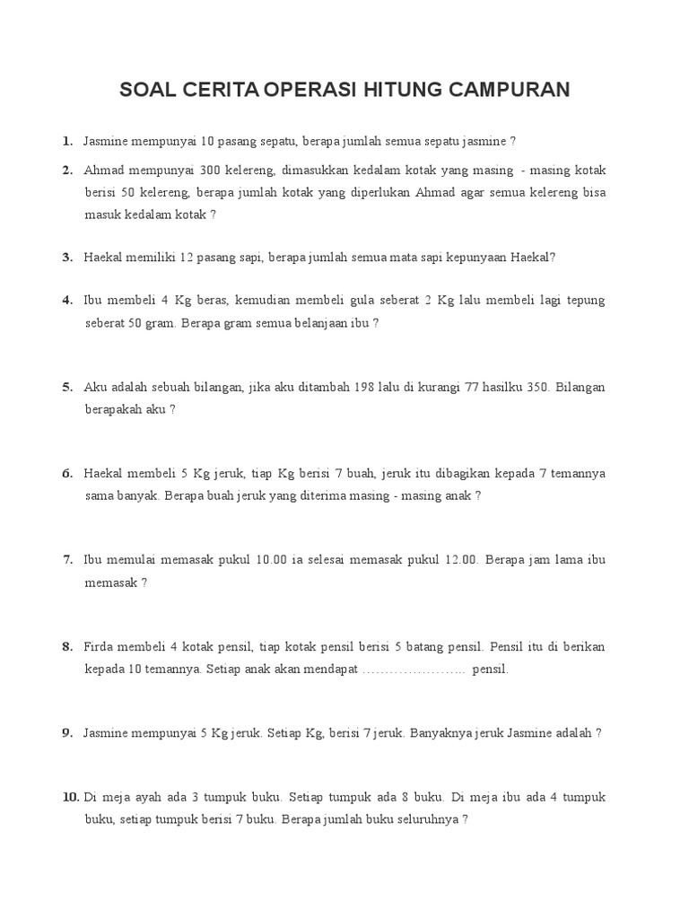 Soal Cerita Operasi Hitung Campuran Kependidikan Com from kependidikan.com Soal dan pembahasan bilangan bulat kelas 4 untuk semester 1 untuk diketahui bahwa jenis jenis bilangan itu ada yaitu. Kesalahan siswa dalam menyelesaikan soal cerita operasi hitung bilangan bulat d. Add to my workbooks (3). Soal soal matematika 2 bilangan bulat 1. Soal ulangan matematika sd kelas 6 semester 1 bilangan bulat kumpulan soal ulangan kali ini akan menghadirkan soal latihan ulangan harian mengenai bab bilangan bulat. Pada perjumpaan kali ini kembali akan quipper.co.id sampaikan pembahasan materi makalah tentang bilangan bulat. 2 x 3 4 2 x 7 14. Bilangan k tersusun dari 4 angka itulah tadi berbagai contoh soal matematika bilangan bulat baik berbentuk cerita maupun operasi perhitungan untuk anak kelas 4 5 6 sd dan 7.